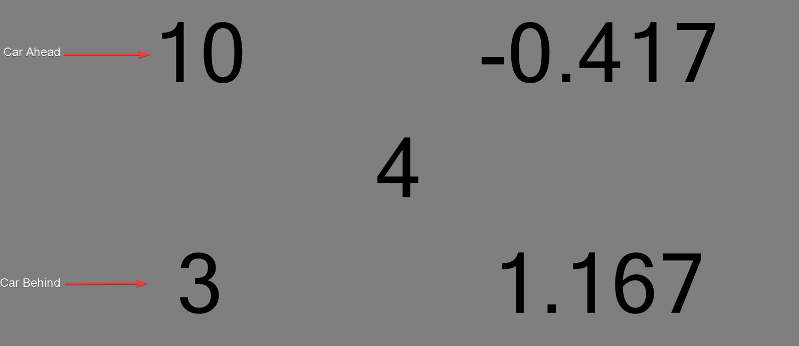 - Gap Type (Track): compares to the nearest cars ahead/behind on track.