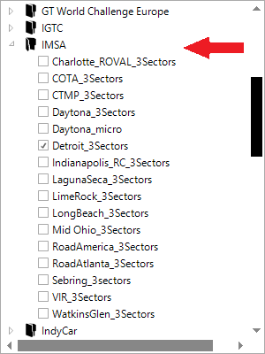The track maps for each events needs to be selected in the IMSA Folder: