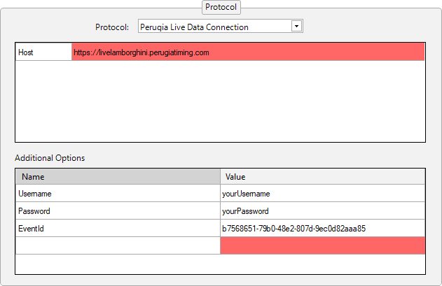 You will need to make a new championship configuration and select Perugia Live Data Connection Protocol.